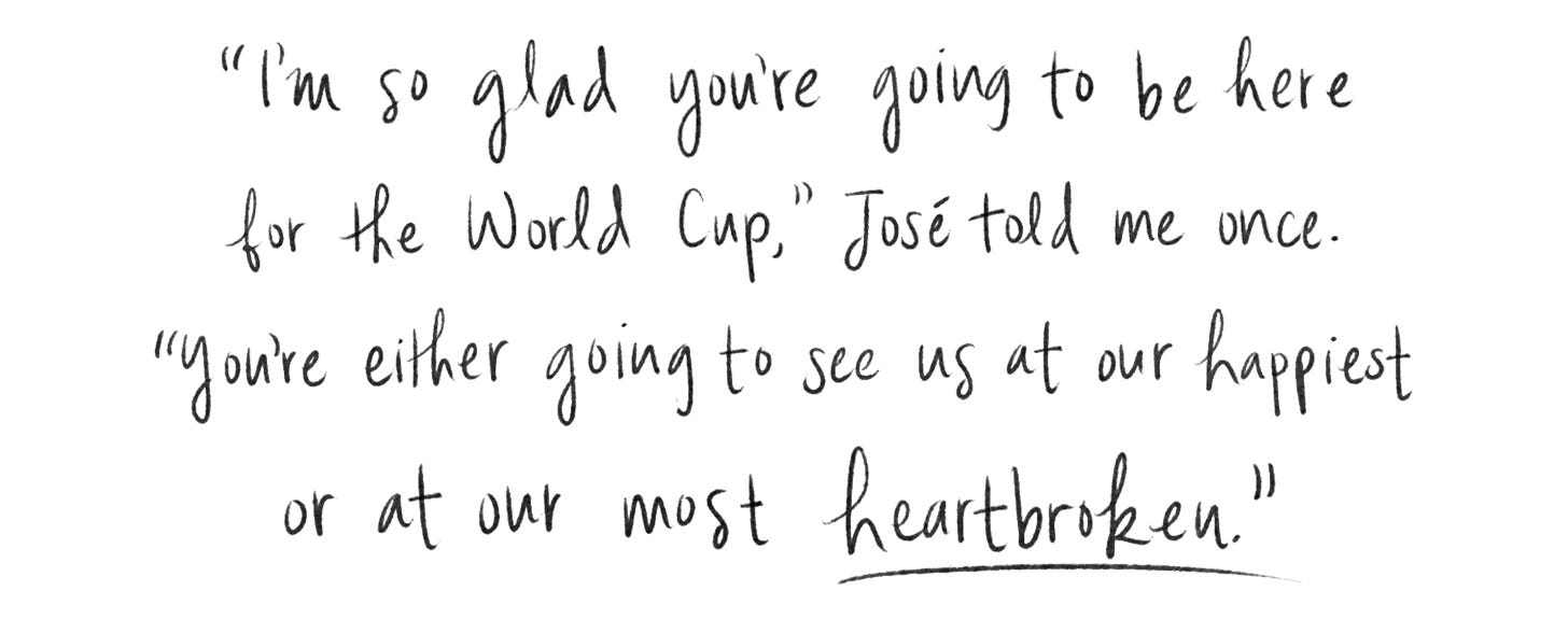 But this arrangement still kept their other arm free, which they used to punch the air in frustration, anger, or, on rare occasions—such as the three goals Uruguay scored that night—exultation.