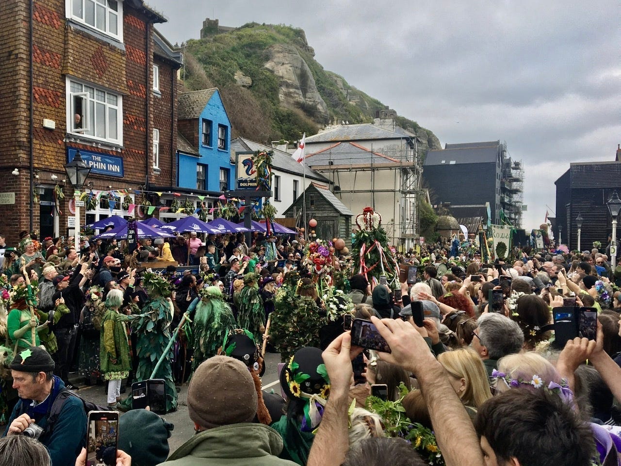 Every year, on the first Monday of May, the people of Hastings parade a man made of leaves through the streets of their town. The leaf-man spins and dances all day, wearing a crown of flowers and followed by his drummers and musicians. The people all wear green. They put garlands of leaves and flowers in their hair. Eventually, the leaf-man is taken to the top of a hill overlooking the sea, where he is slaughtered in front of the townsfolk. This ritual is a piece of hoary old seasonal magic, rooted deep in the green fields of England, and it’s been going on for a very long time. Longer than I’ve been alive, in fact. It dates back all the way to 1983.